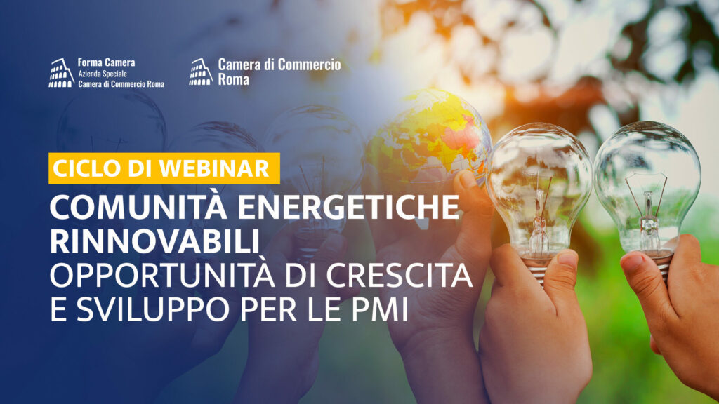La Camera di Commercio di Roma promuove il Progetto formativo, “Comunità energetiche rinnovabili: opportunità di crescita e sviluppo per le PMI”, organizzato da Forma Camera, in un ciclo di webinar , con l’obiettivo di fornire ai partecipanti le competenze per comprendere i principi fondamentali della sostenibilità e transizione energetica , gli utilizzi di reportistica volontaria di sostenibilità e le modalità operative per la creazione e gestione di una CER (Comunità Energetica Rinnovabile).