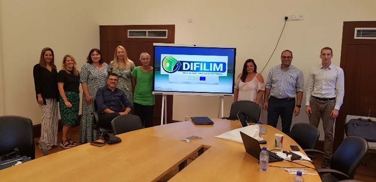 partecipanti vicino a schermo con immagine progetto DIFILIM