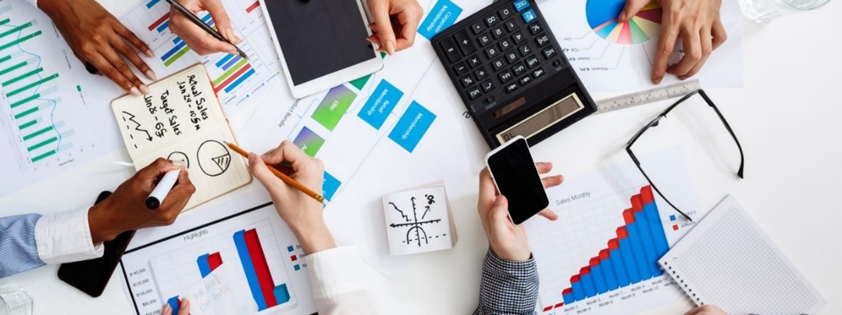 tavolo con mani e strumenti di lavoro